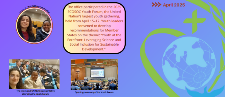 From April 15–17, 2025, the Sacred Heart at the UN NGO office took part in the ECOSOC Youth Forum, the United Nations’ largest annual youth gathering. We share the newsletter below, highlighting the events and experiences from the ECOSOC Youth Forum.